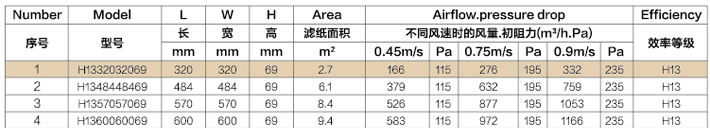 过滤效率: ≥99.995%at 0.3um @0.45m/s
